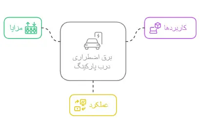 برق اضطراری یا UPS مخصوص درب پارکینگ به‌ گونه‌ای طراحی شده که بلافاصله پس از قطع برق، وارد مدار می‌شود و انرژی لازم برای باز یا بسته کردن درب را تأمین می‌کند. برخلاف